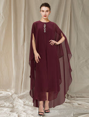 Two Piece Sheath / Column Mother of the Bride Dress Elegant Jewel Neck Tea Length Chiffon Sleeveless with Beading - US 2 / UK 6 / EU 32