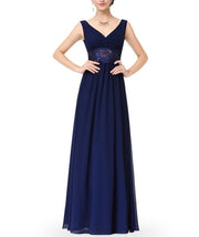 V Neck Sleeveless Lace Sheer Waist Ruched Chiffon Prom Dress Long