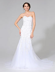 Wedding Dresses Mermaid / Trumpet Sweetheart Sleeveless Sweep / Brush Train Tulle Bridal Gowns With Crystal Beading - US 2 / UK 6 / EU 32