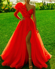 One Sleeves Tulle Ruffles Evening Dresses - US 2 / UK 6 / EU 32