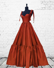 Orange Satin Ruffles Hem Evening Dress With Bow