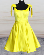Yellow Satin Bow Shoulder Homecoming Dresses