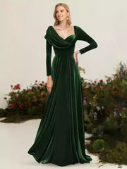 Charming A-line/Princess style asymmetrical long sleeved pleated velvet Mother of the Bride Dresses