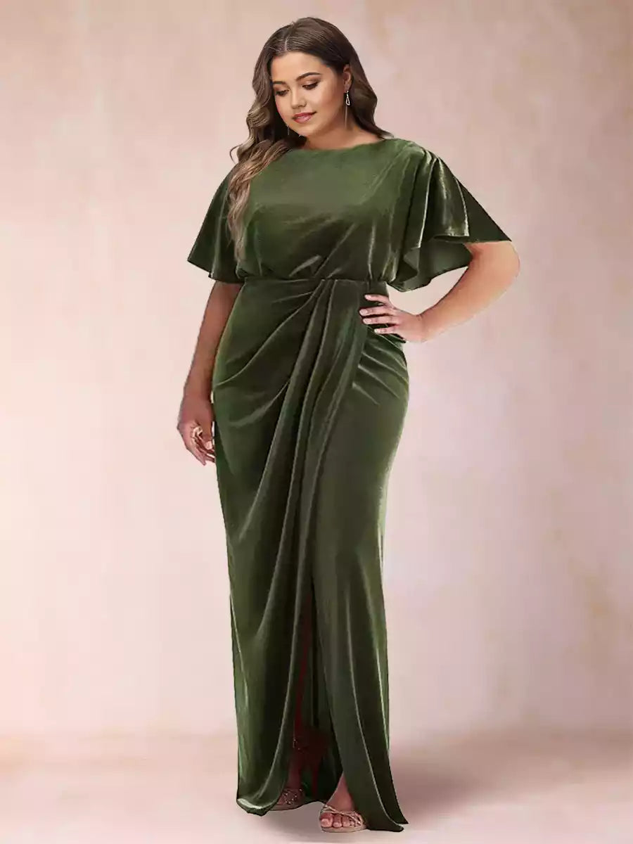 Charming slim fit/straight round neck short sleeved plus size side slit ruffle hem Mother of the Bride Dresses - US 2 / UK 6 / EU 32