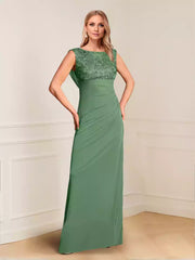 Elegant slim fit/column shaped empire round neck lace pleated Mother of the Bride Dresses