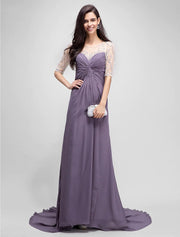 A-Line Mother of the Bride Dress Elegant Scoop Neck Floor Length Chiffon Half Sleeve No with Criss Cross Beading