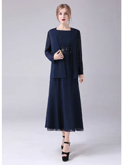 A-Line Mother of the Bride Dress Elegant Sweet Jewel Neck Ankle Length Chiffon Sleeveless with Beading