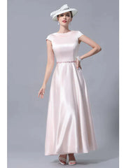 A-Line Mother of the Bride Dress Plus Size Cowl Neck Ankle Length Satin Short Sleeve with Crystals
