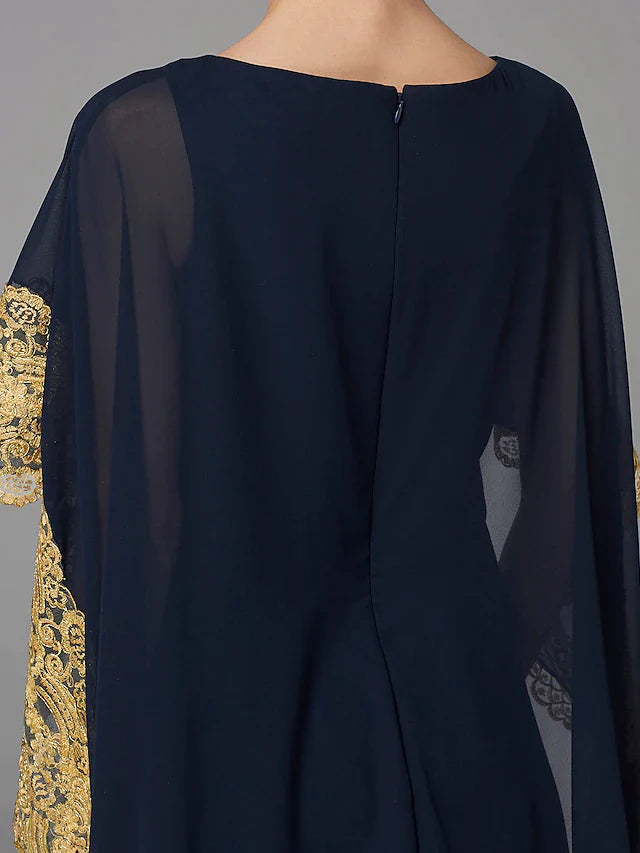 A-Line Mother of the Bride Dress Plus Size Elegant Bateau Neck Sweep / Brush Train Chiffon Sleeveless with Lace