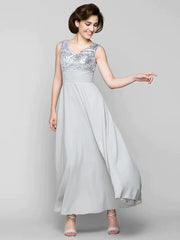 A-Line Mother of the Bride Dress Sparkle & Shine Bateau Neck Ankle Length Chiffon Sleeveless with Sash Ribbon Sequin