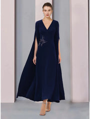 A-Line Mother of the Bride Dress Wedding Guest Elegant V Neck Ankle Length Stretch Chiffon Half Sleeve with Sequin Ruching Solid Color - US 2 / UK 6 / EU 32