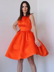 A-Line Princess Satin Ruffles Scoop Sleeveless Short Mini Dresses