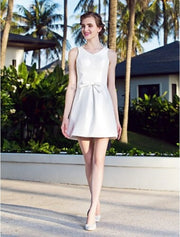 A-Line V Neck Short / Mini Nylon Taffeta Made-To-Measure Wedding Dresses with Bowknot - US 2 / UK 6 / EU 32