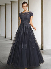 Ball Gown Mother of the Bride Dress Luxurious Elegant Jewel Neck Floor Length Lace Tulle Short Sleeve with Crystals Appliques Ball Gown Mother of the Bride Dress Luxurious Elegant Jewel Neck Floor Length Lace Tulle Short Sleeve with Crystals Appliques - US 2 / UK 6 / EU 32
