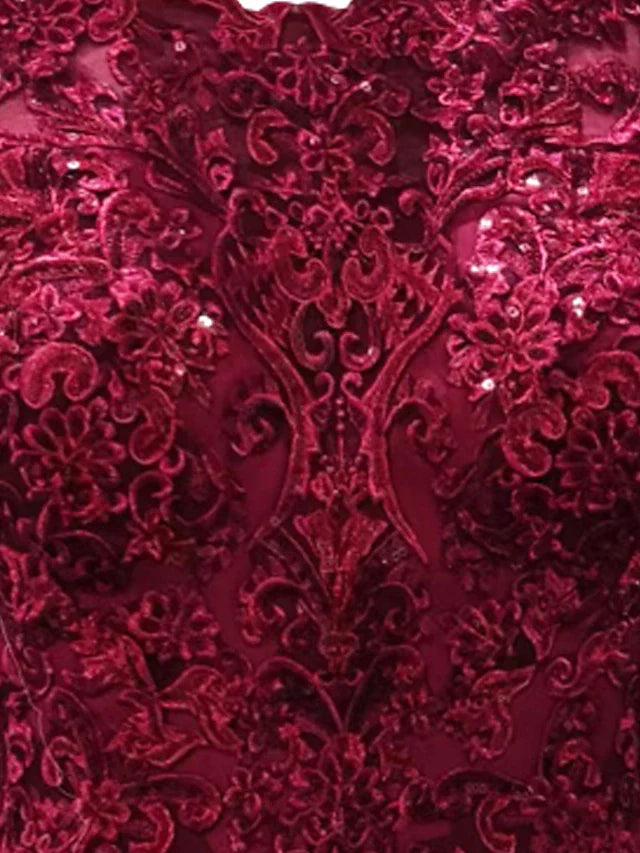 DingjiA-Line Mother of the Bride Dress Elegant Jewel Neck Sweep / Brush Train Chiffon Lace Short Sleeve with Appliques