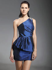 DingjiSheath / Column All Celebrity Styles Dress Holiday Short / Mini Sleeveless One Shoulder Taffeta with Beading Ruffles