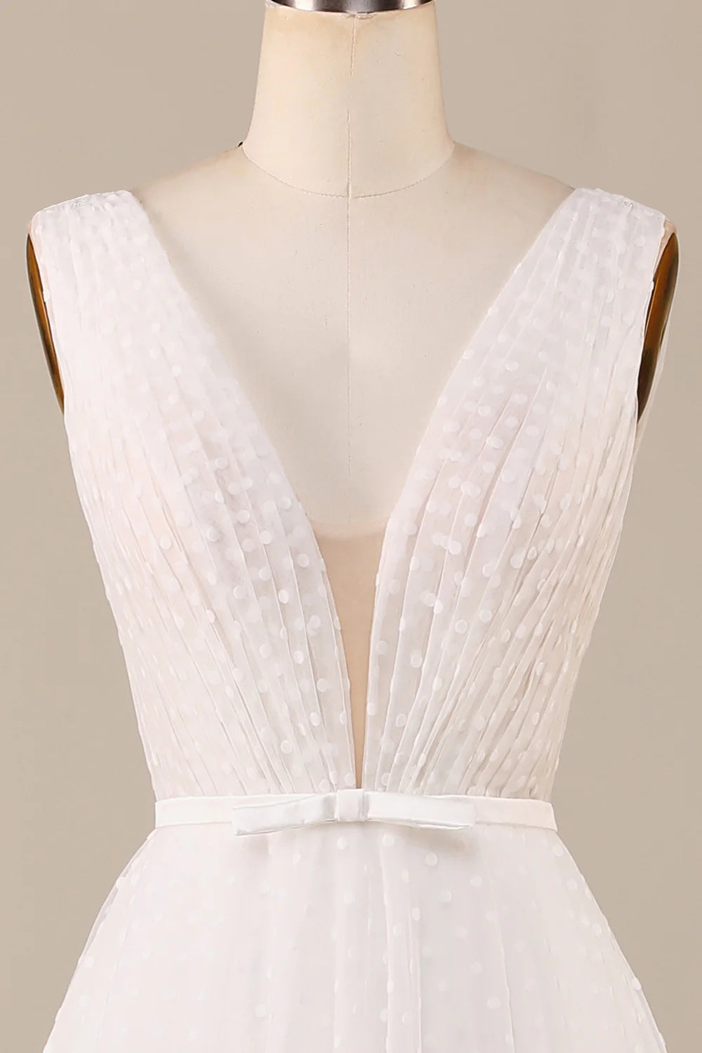 Elegant A Line V Neck Ivory Detachable Watteau Train Tulle Wedding Dress