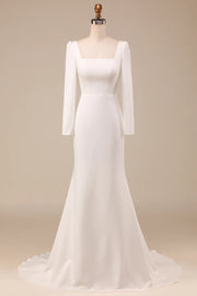 Ivory Mermaid Square Neck Bridal Dress With Long Sleeves