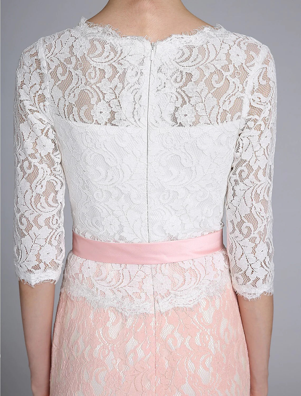 Mermaid / Trumpet Mother of the Bride Dress Color Block Jewel Neck Floor Length Lace Half Sleeve No with Sash / Ribbon