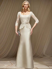 Mermaid / Trumpet Mother of the Bride Dress Formal Wedding Guest Elegant Square Neck Asymmetrical Tea Length Lace Taffeta 3/4 Length Sleeve with Appliques