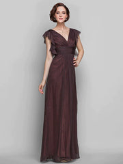 Mother of the Bride Dress Beautiful Back V Neck Floor Length Chiffon Short Sleeve with Criss Cross Ruched Draping