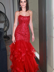 Sequin Halter Organza Sleeveless Floor-Length Prom Dresses Red