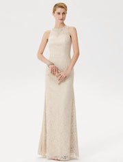 Sheath / Column Mother of the Bride Dress Elegant See Through Illusion Neck Floor Length Lace Sleeveless with Crystals Beading