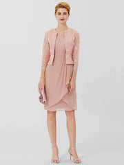 Sheath / Column Mother of the Bride Dress Formal Classic & Timeless Elegant & Luxurious Convertible Dress Jewel Neck Knee Length Chiffon Sheer Lace 3/4 Length Sleeve with Sash / Ribbon