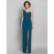 Sheath / Column Mother of the Bride Dress Furcal One Shoulder Floor Length Chiffon Sleeveless with Beading