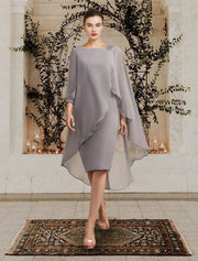 Sheath / Column Mother of the Bride Dress Wedding Guest Elegant Jewel Neck Floor Length Chiffon 3/4 Length Sleeve with Beading Sequin Fall