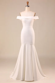 Simple Ivory Mermaid Lace-Up Back Long Wedding Dress