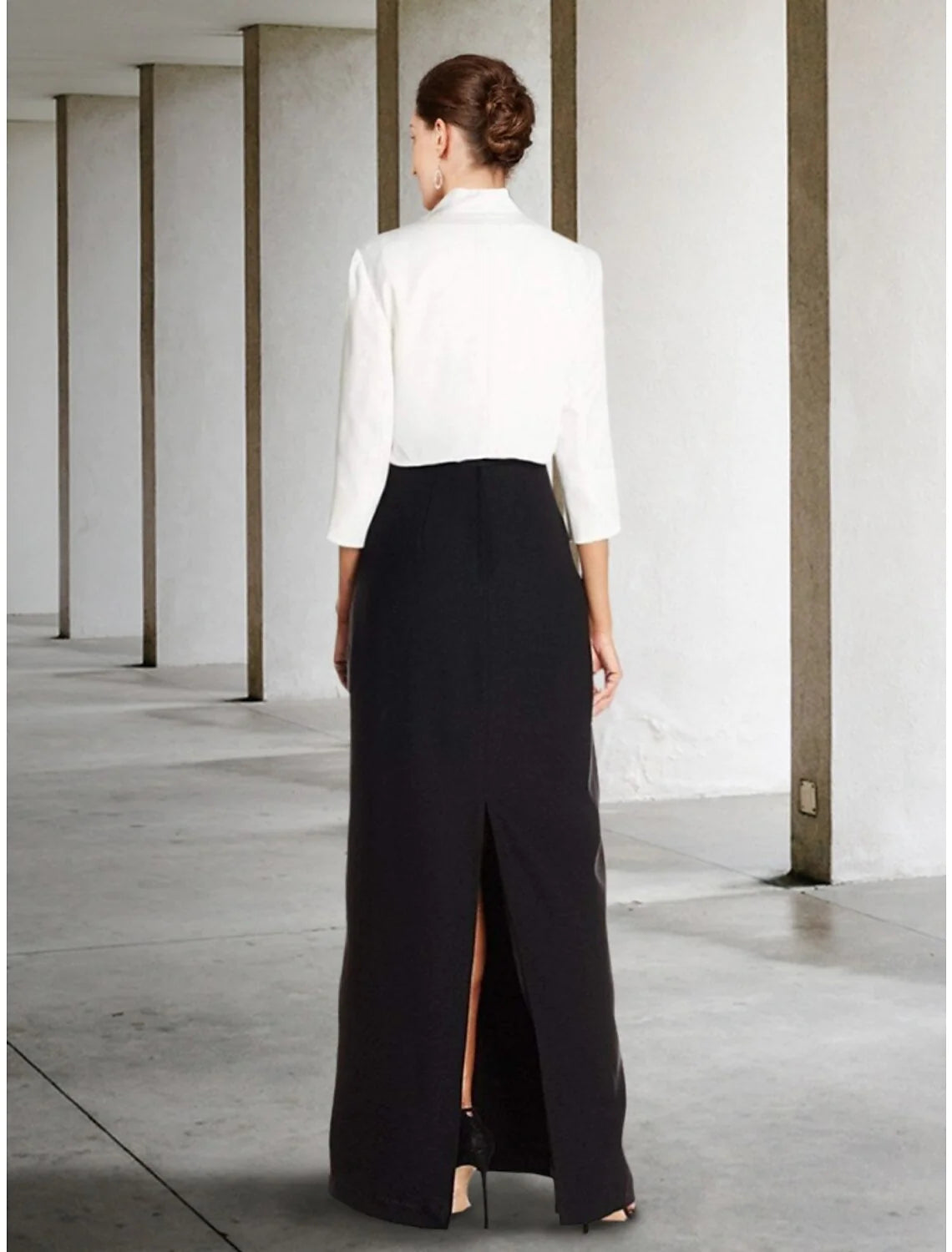 Two Piece Sheath / Column Mother of the Bride Dress Wedding Guest Elegant Black Dress V Neck Ankle Length Stretch Chiffon Half Sleeve with Sequin Split Front Ruching - US 2 / UK 6 / EU 32