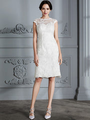 A-Line/Princess Sleeveless Scoop Knee-Length Lace Satin Wedding Dresses