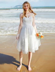 Hall Boho Wedding Dresses A-Line Sweetheart Strapless Knee Length Lace Bridal Gowns With Lace