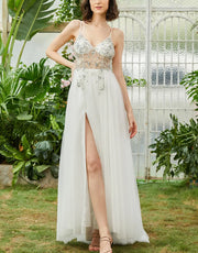 A-Line Spaghetti Straps Long Prom Dress With Beading