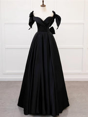 A-Line Sweetheart neck Satin Black Long Prom Dress