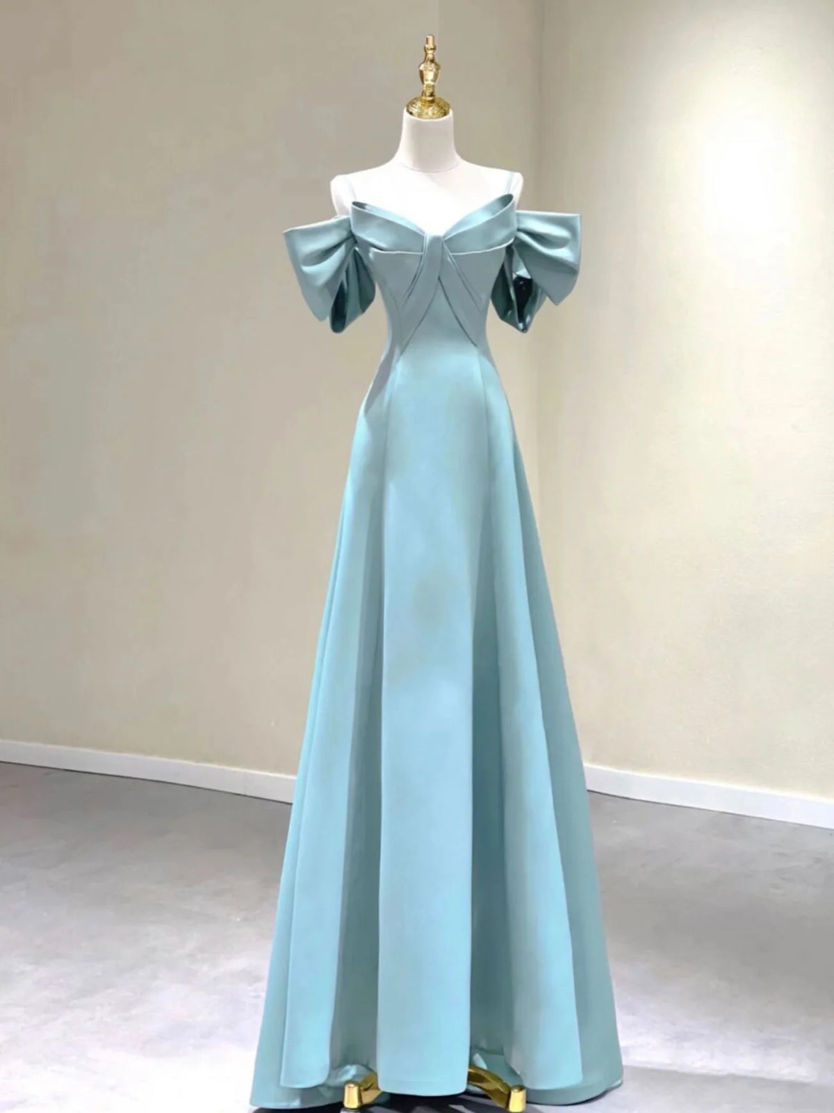 A-Line V Neck Satin Blue Long Prom Dress Blue Formal Evening Dresses