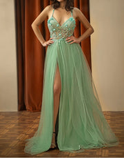 Backless Beaded Slit Prom Dress - US 2 / UK 6 / EU 32