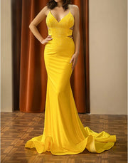 Beaded Yellow Open Back Prom Dress - US 2 / UK 6 / EU 32