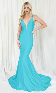 Beautiful deep V-neck, slim shoulder straps, backless skirt, flowing down to the ground, outlining a graceful figure Prom Dresses - US 2 / UK 6 / EU 32