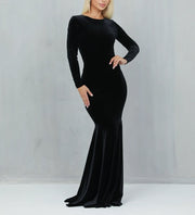 Black Dress Velvet Dress Long Sleeve Dress Bridesmaid Dress Black Wedding Dress Prom Dress Evening dress