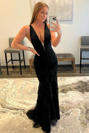 Black Embroidered Mermaid Long Prom Dress - Black / US 2 / UK 6 / EU 32