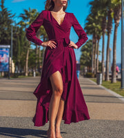 Burgundy long wrap around dress Prom dress cocktail dress wedding guest dress maxi dress formal dress