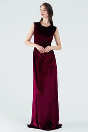Burgundy Sleeveless Velvet Prom Dress with Floor-length Design & Button-back Detail