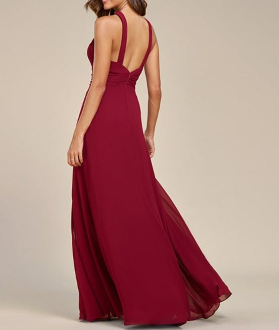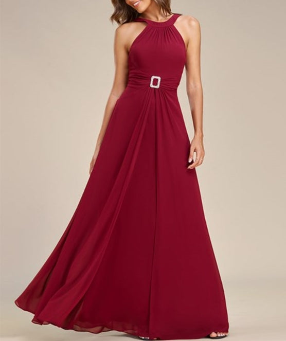 Burgundy Wholesale Chiffon Prom Dresses Backless Halter Neck Rhinestone