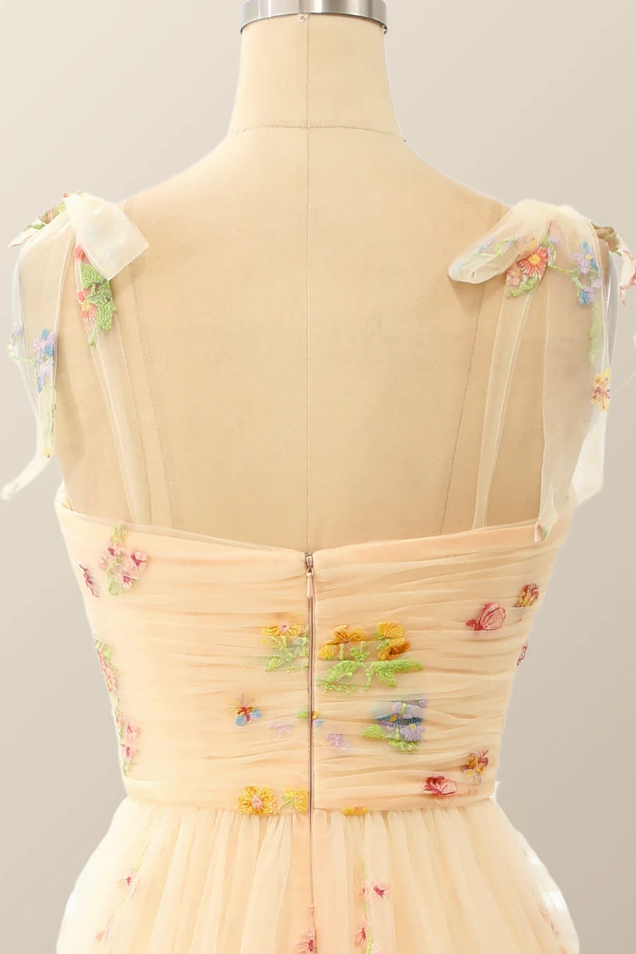 Champagne A-line Embroidered Long Prom Gown - US 2 / UK 6 / EU 32