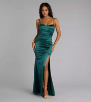 Charming smooth knit sleeveless heart-shaped neckline with pleats, adjustable slim shoulder straps, high slit and floor mermaid Prom Dresses - US 2 / UK 6 / EU 32