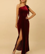 Dark Burgundy Prom Dress Velvet Long Dress Evening Dress Wedding Guest Dress Slit Dress One Shoulder Dress Formal Dress