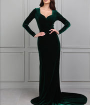 Dark Emerald Green Prom Dress Velvet Dress Formal Dress Evening Dress