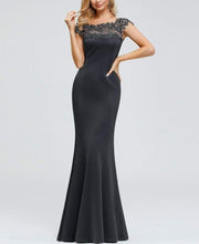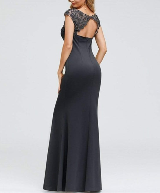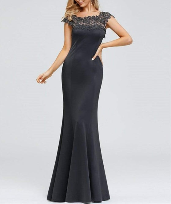 Dark Grey Illusion Lace Applique Mermaid Prom Dresses With